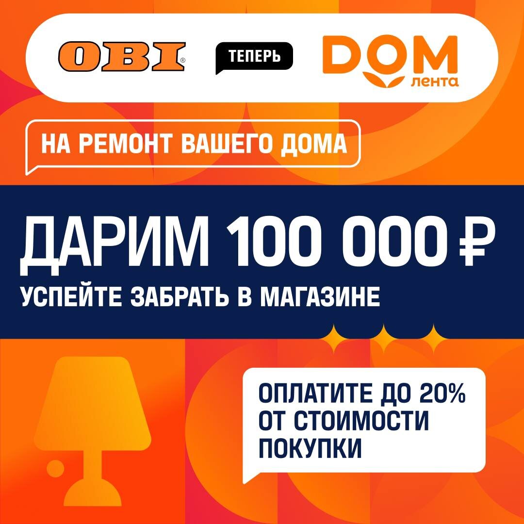 ОБИ Россия теперь — Дом Лента, и в честь нашего обновления мы запускаем масштабную акцию ⚡️