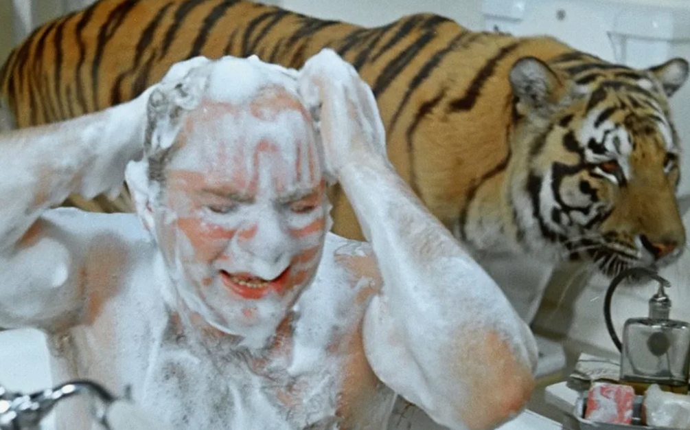 В сцене в ванной с тигром Леонову действительно было страшно, но никакого пуленепробиваемого стекла не было — это миф.
