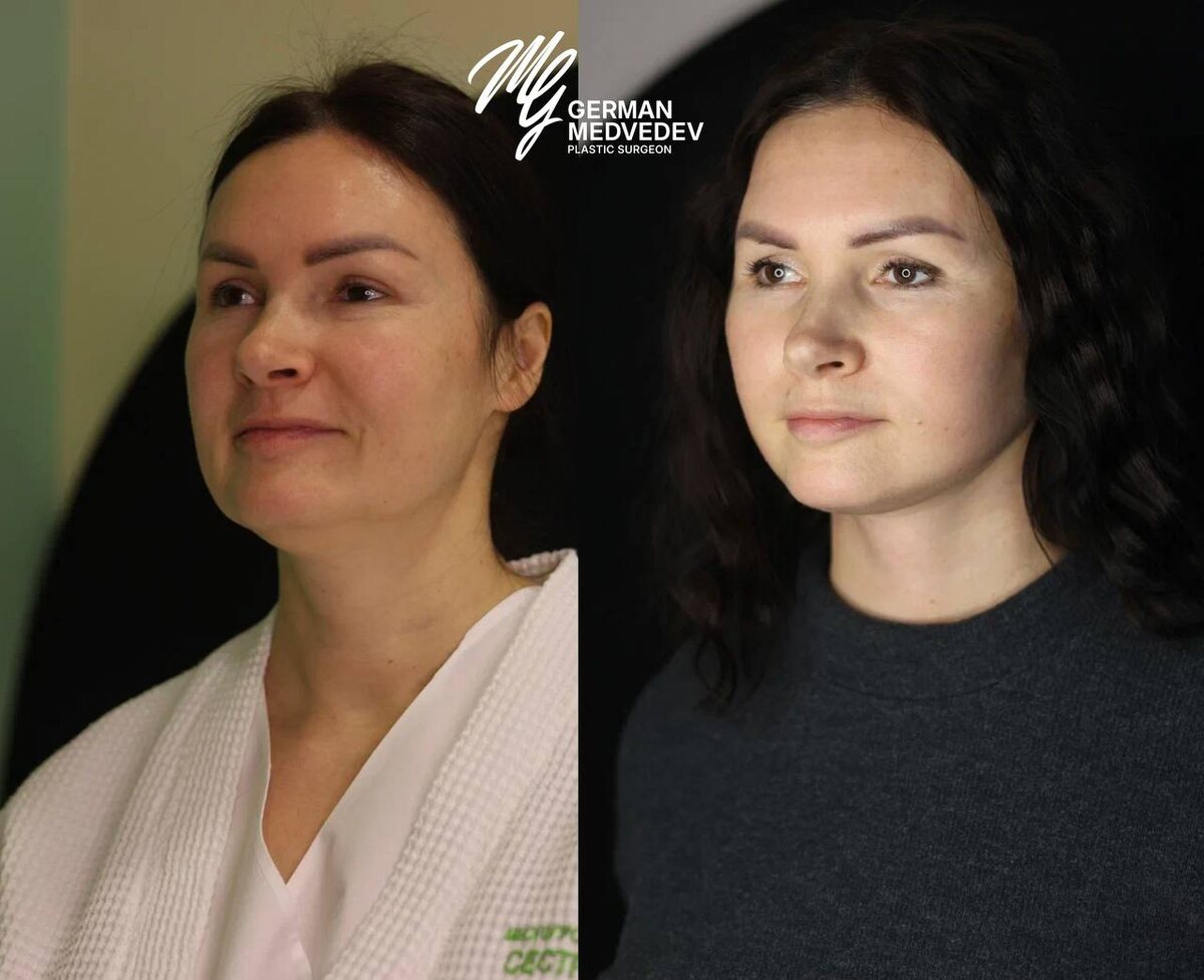 ΠΠ° ΡΠΎΡΠΎ β ΡΠ΅Π·ΡΠ»ΡΡΠ°Ρ Π΄ΠΎ ΠΈ ΠΏΠΎΡΠ»Π΅ Π³Π»ΡΠ±ΠΎΠΊΠΎΠΉ SMAS-ΠΊΠΎΡΡΠ΅ΠΊΡΠΈΠΈ ΠΏΠΎ ΡΠΈΠΏΡ Deep Plane Face Lift Π² ΡΠΎΡΠ΅ΡΠ°Π½ΠΈΠΈ Ρ Π³Π»ΡΠ±ΠΎΠΊΠΎΠΉ ΠΏΠΎΠ΄ΡΡΠΆΠΊΠΎΠΉ ΡΠ΅ΠΈ. π΅Π§ΡΠΎ Π²Π°ΠΆΠ½ΠΎ ΠΎΡΠΌΠ΅ΡΠΈΡΡ: β Π²ΠΎΡΡΡΠ°Π½ΠΎΠ²Π»Π΅Π½ ΡΡΡΠΊΠΈΠΉ ΠΎΠ²Π°Π» Π»ΠΈΡΠ° β ΡΠΌΠ΅Π½ΡΡΠ΅Π½Ρ Π±ΡΡΠ»ΠΈ β ΡΡΠΎΡΠΌΠΈΡΠΎΠ²Π°Π½ Π²ΡΡΠ°Π·ΠΈΡΠ΅Π»ΡΠ½ΡΠΉ ΡΠ΅ΠΉΠ½ΠΎ-ΠΏΠΎΠ΄Π±ΠΎΡΠΎΠ΄ΠΎΡΠ½ΡΠΉ ΡΠ³ΠΎΠ» β ΠΏΡΠΈ ΡΡΠΎΠΌ ΡΠΎΡ