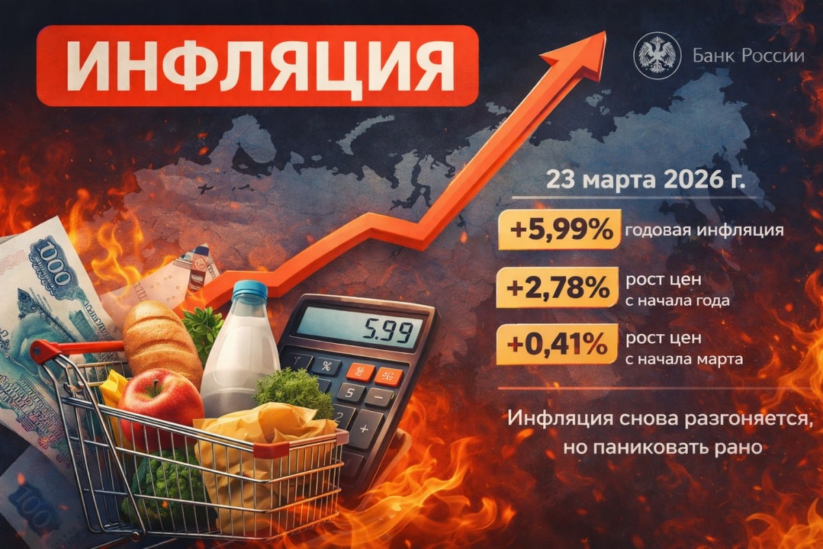 🤔 Если коротко, свежая недельная статистика мне не очень понравилась. 📈За период с 17 по 23 марта инфляция составила 0,19% после 0,08% неделей ранее. С начала марта цены выросли на 0,41%, а с начала года — уже на 2,78%. 🔼 Годовая инфляция на 23 марта ускорилась почти до 6% — до 5,99% по методике, на которую обычно смотрит ЦБ. 🤔 Лично я ждал, что инфляция хотя бы останется примерно на прежних уровнях. Но пока видим, что она снова ползёт вверх. На мой взгляд, негатива могли добавить ослабление рубля и вся история с Ближним Востоком. 🗣 При этом в ЦБ всё равно говорят, что текущий прогноз по-прежнему предполагает довольно существенное дальнейшее снижение ставки в этом году. Об этом на этой неделе отдельно сказал Алексей Заботкин. ⚠️ Но делать далеко идущие выводы пока слишком рано. Одна неделя — это ещё не показатель. Если такая динамика продолжится и дальше, тогда ЦБ на следующем заседании уже вполне может взять паузу. 📆 Следующее заседание Банка России пройдёт 24 апреля 2026