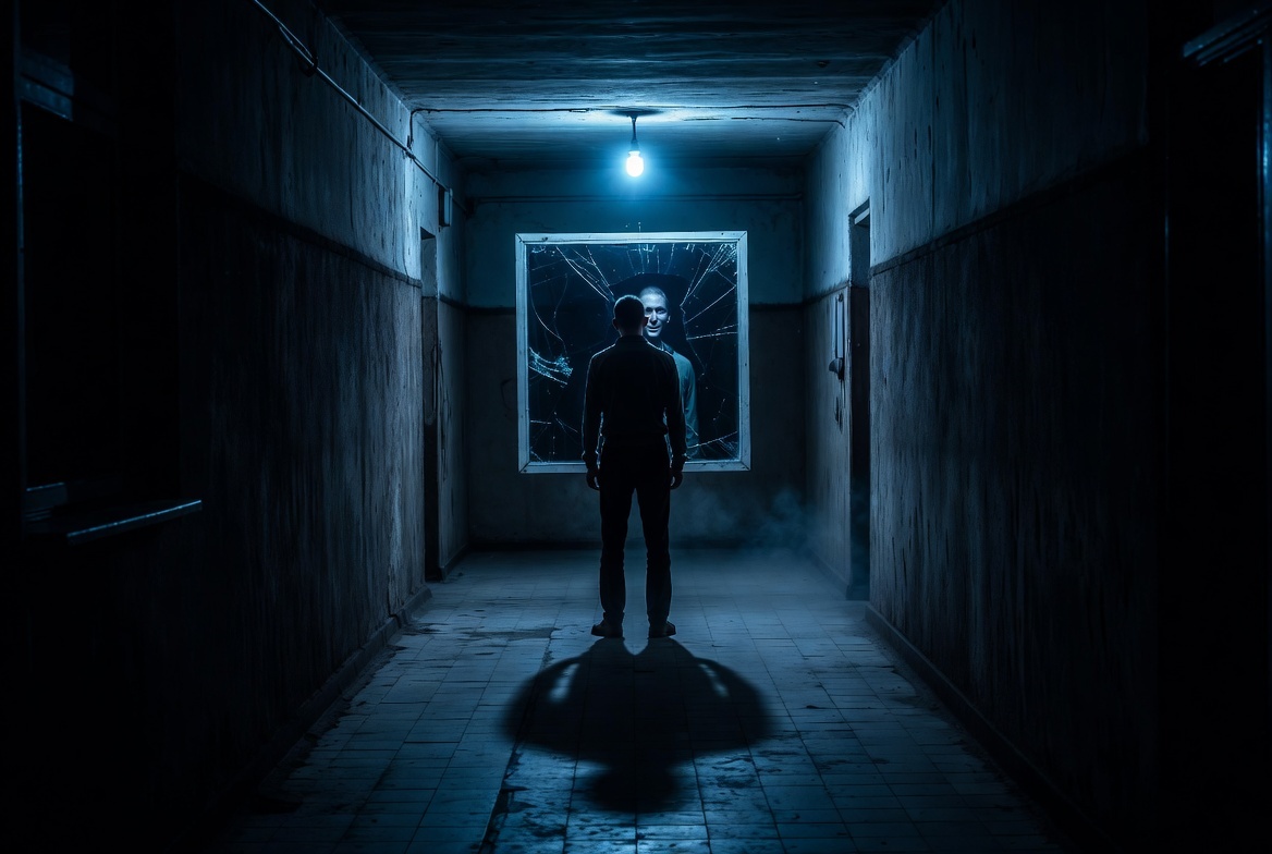 Утром я встал и подошёл к зеркалу в коридоре. Тень была там. Рядом со мной. Чёткая. Синхронная.