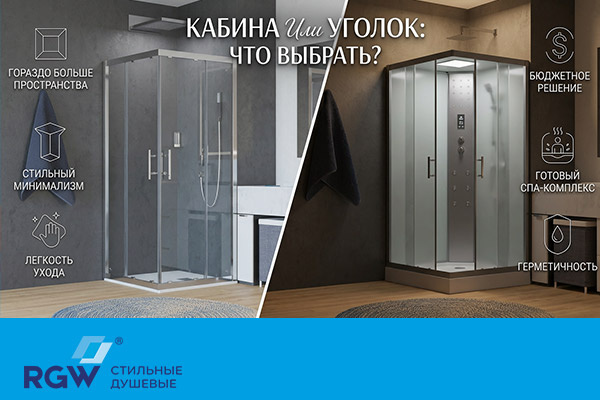 Когда дело доходит до ремонта ванной, большинство застревает на одном вопросе: ставить душевую кабину или душевой уголок? Кажется, что разница только в цене. На самом деле — в удобстве на годы вперёд, в защите от протечек и даже в том, насколько легко будет мыть стекло по утрам. Я собрал выжимку из большого экспертного гайда — только суть, без воды. Кабина и уголок — в чём принципиальная разница Душевой уголок — это две стеклянные стенки с дверью, которые ставятся в угол ванной. Роль задних стен выполняет ваша плитка. Минимальный размер — от 70×70 см. Конструкция открытая, лёгкая, компактная. Душевая кабина — полностью закрытый бокс с собственными задними панелями, иногда с крышей. Размер обычно от 90×90 см. Внутри могут быть гидромассаж, подсветка, радио, полки — целый комплекс. Если совсем коротко: