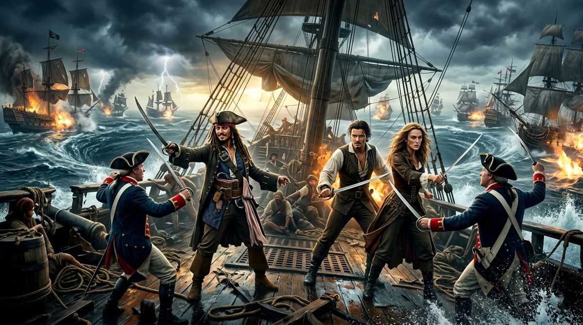 - Мое мнение: Это масштабное и зрелищное завершение трилогии, которое радует глаз яркими красками и динамичными сценами. Экзотические пейзажи, фантастические корабли, бушующие моря, магические эффекты и харизматичные герои создают атмосферу настоящего приключения. Фильм остается одним из самых визуально богатых блокбастеров своего времени, даря ощущение восторга и удивления.