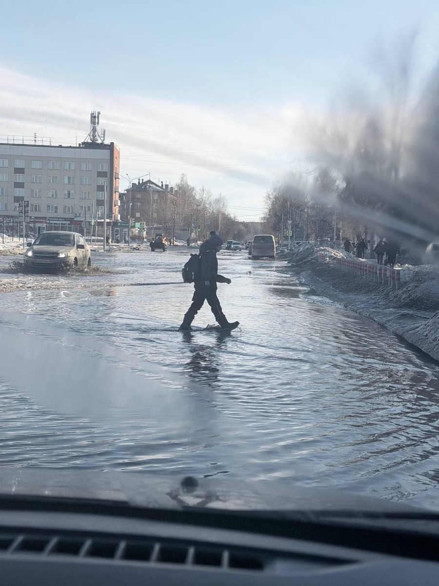 Чиновники в Назарово игнорируют океан тающего снега даже на центральных улицах города