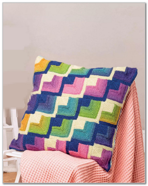Свяжите эту потрясающую подушку, чтобы добавить радостный акцент в вашу гостиную. Вдохновленая винтажным пэчворком, но в современной интерпретации. Модульные квадраты создают диагональные дорожки на полотне подушки.