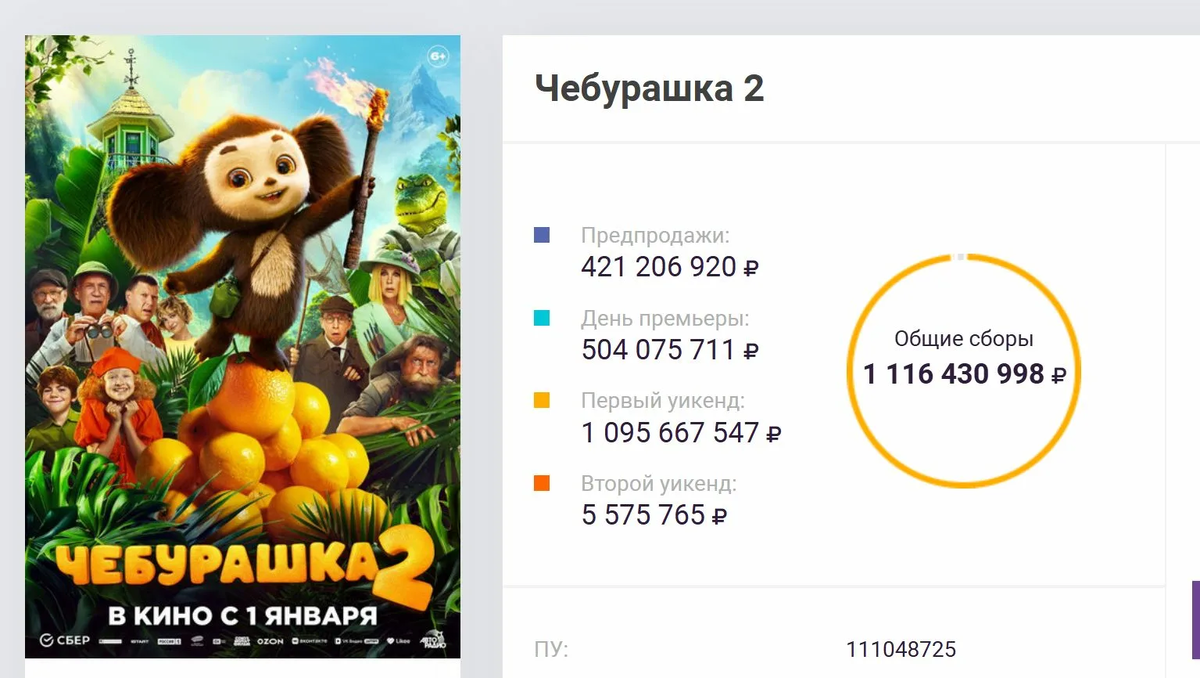 1 234 комментария Фото: предоставлено Yellow, Black and White 1 января 2026 года в российский прокат вышло продолжение самого кассового фильма в истории отечественного кино. «Чебурашка 2» режиссера Дмитрия Дьяченко стартовал с прогнозами осторожного оптимизма. Никто не ждал повторения рекорда первой части — 6 миллиардов рублей сборов и 22 миллиона зрителей. Но уже через две недели в кассе было 4,5 миллиарда рублей, а фильм обогнал первую часть по темпам сбора «в деньгах» . Продюсеры признаются: успех — это во многом подорожавшие билеты. Зрители плачут, ругают голливудские шаблоны и требуют третью часть. Она уже анонсирована на 1 января 2027 года. И там у Чебурашки появится семья из четырех персонажей . Разбираемся, как считаются сборы, что зрители пишут на самом деле и сколько можно заработать на советском символе детства в 2026 году. Старт «Ч