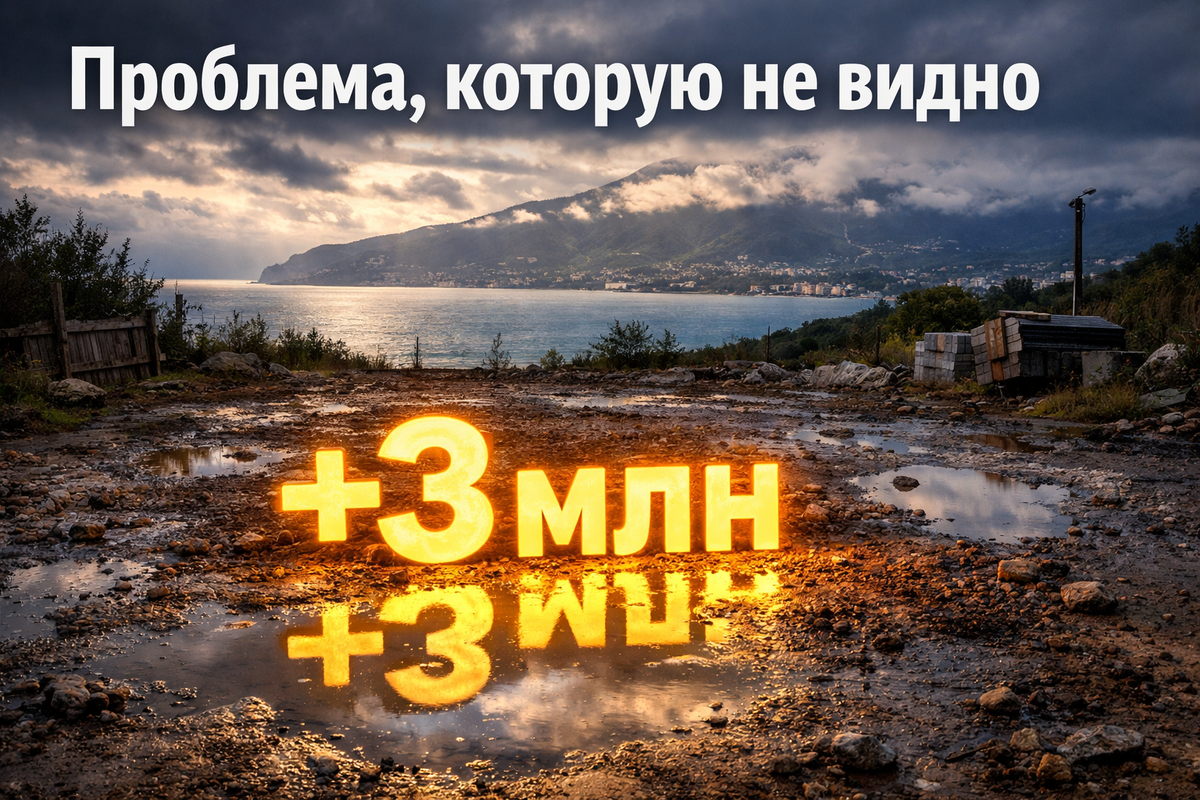 Здравствуйте, это Гулмахмад. Ко мне регулярно приходят люди, которые покупают участок в Ялте у моря, рассчитывают на лёгкую стройку и комфортную жизнь… а потом сталкиваются с тем, что вода начинает диктовать свои правила. И это не про вид на море. Это про грунтовые воды, стоки и постоянные проблемы, которые выливаются в миллионы. Недавно была ситуация с семейной парой из Москвы. Они долго искали участок именно «поближе к морю». В итоге нашли вариант за 18 миллионов рублей — практически первая линия, красивый вид, лёгкий уклон, всё выглядело очень привлекательно. Продавец уверял: «Здесь всё просто, строятся, никаких сложностей». И это звучало логично — место ведь ровнее, чем в горах. Когда они пришли ко мне, участок уже был куплен. План — дом около 200 квадратов, современный, с террасой, максимум стекла, чтобы «жить с видом». Бюджет на строительство закладывали около 20 миллионов. Мы поехали на участок. И первое, что я всегда смотрю в таких местах — поведение воды. Потому что у моря со