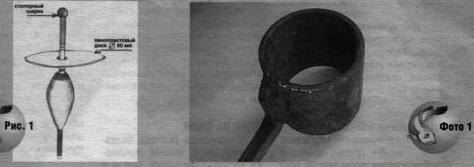 Но поплавок не совсем обычный (рис. 1). На антенне закреплен пенопластовый диск диаметром около 50-60 мм. Диск свободно перемещается вверху, препятствует его слету вклеенный пенопластовый шарик. Так вот, фиксировать осторожные поклевки диск не мешает, но как только усилиями рыбы поплавок исчезает под водой, диск, имеющий приличное лобовое сопротивление, создает эффект самоподсечки — примерно как в случае с глухим грузилом. И в довершение всей снасти — кованый остро отточенный крючок 10-го номера по российской классификации.