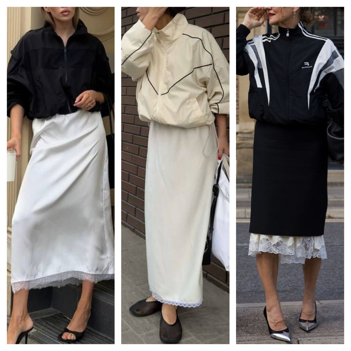 Юбка с кружевом + олимпийка в спортивном стиле
