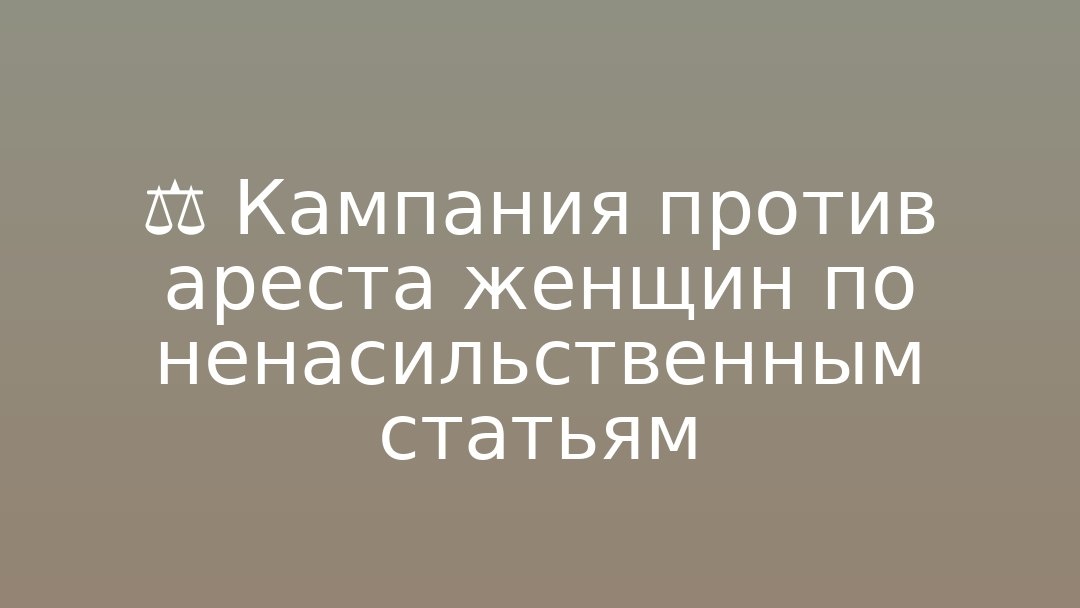 запрет на заключение под стражу женщин (в особенности матерей) по ненасильственным составам. В качестве примеров приводятся: Алия Галицкая (Истра, задержана 6 февраля по заявлению Александра Галицкого; дело прекращено за отсутствием состава), журналистка Александра Баязитова (просила об изменении меры пресечения по состоянию здоровья), Вероника Морковкина (отправлена в СИЗО по заявлению бывшего мужа). Инициативу поддержали член СПЧ Ева Меркачёва и правозащитник Виталий Буркин, обратившийся к председателю Верховного суда, депутатам Госдумы и сенаторам; правозащитник Иван Мельников направил письмо председателю СК России Александру Бастрыкину с просьбой изменить подход следствия к арестам женщин.