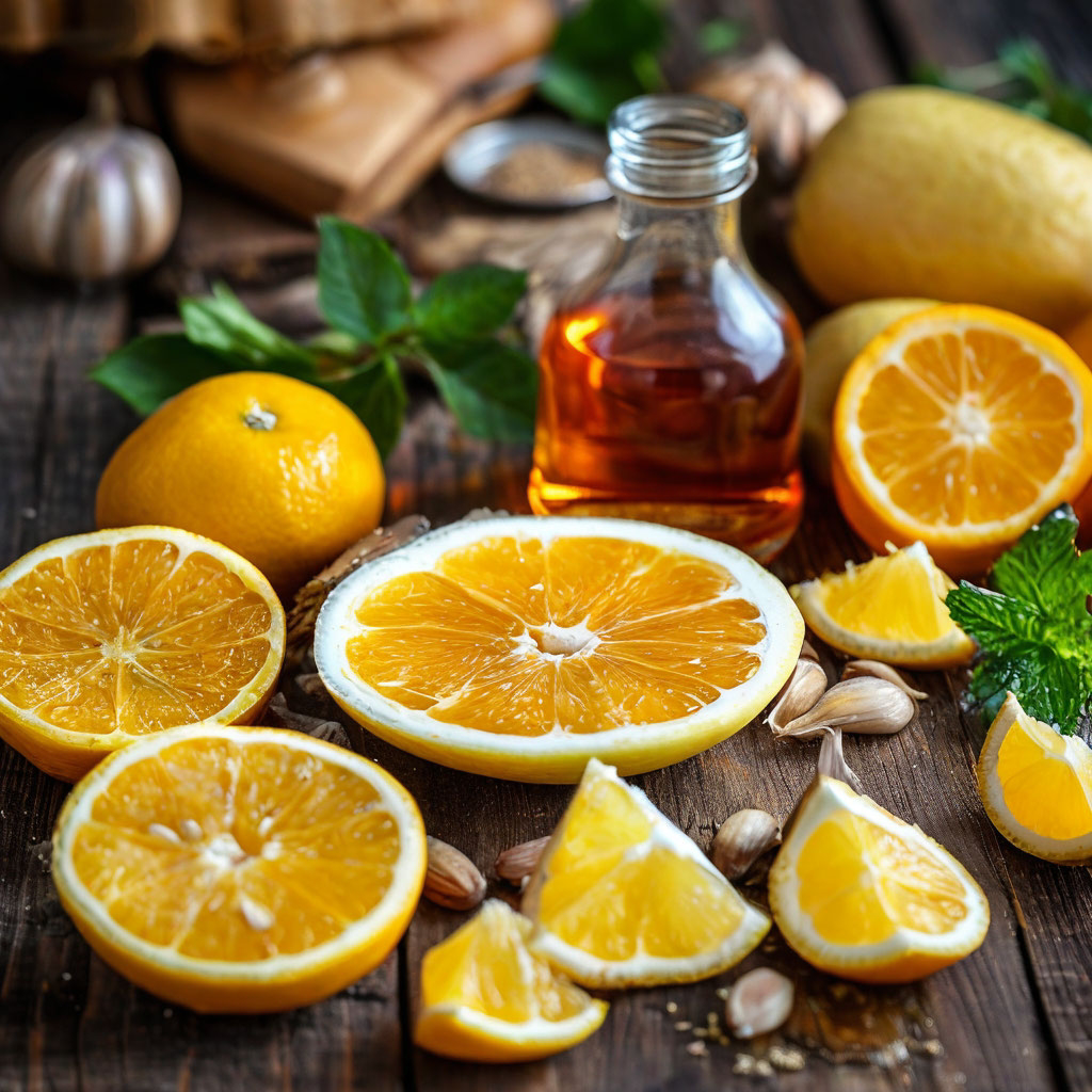 Источники: витамин C - овощи, фрукты, ягоды, витамин D - жирная рыба, молочные продукты, солнце.