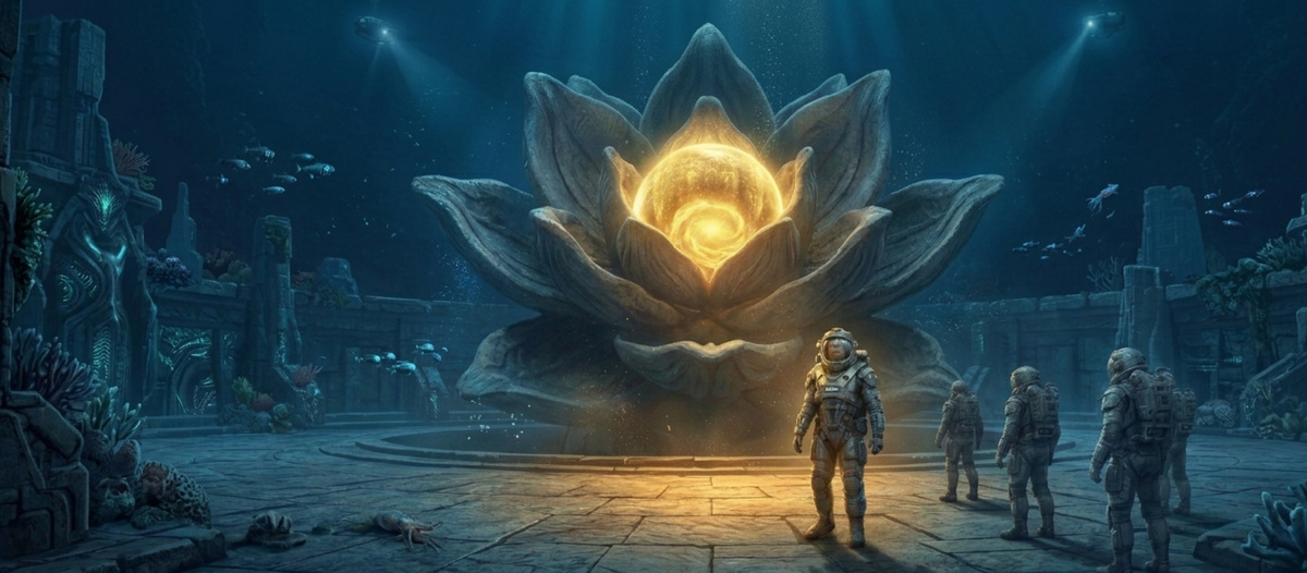 Группа двигалась по улицам подводного города, и с каждым шагом пульсация камней становилась ощутимее. Не просто вибрация, которую можно было почувствовать сквозь подошвы скафандров, — это был ритм, проникающий сквозь защиту, сквозь кожу, сквозь кости. Как будто сам город бился в такт их сердцам.
