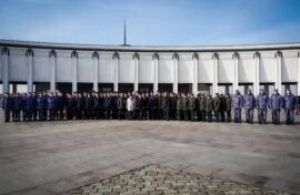 У Музея Победы сотрудники подразделений Главного управления Росгвардии по городу Москве совместно с курсантами Юридического колледжа и колледжа им. Маршала В. И. Чуйкова почтили память героев и возложили цветы к Вечному огню. «В преддверии десятилетия Росгвардии мы отдаем дань уважения бессмертному подвигу героев. Особенно важно сохранение памяти о великой жертве нашего народа для подрастающих поколений. Эта преемственность — фундамент, на котором строится история», — подчеркнул полковник полиции Александр Романенко. В рамках памятного мероприятия председатель совета ветеранов вневедомственной охраны полковник милиции в отставке Геннадий Томин рассказал собравшимся о героической обороне Москвы. Памятное возложение было приурочено к 10-летию со дня образования Федеральной службы войск национальной гвардии Российской Федерации и 215-летию войск правопорядка. Ранее сообщалось, что в День защитника Отечества председатель Государственной думы Вячеслав Володин, руководители политических фрак