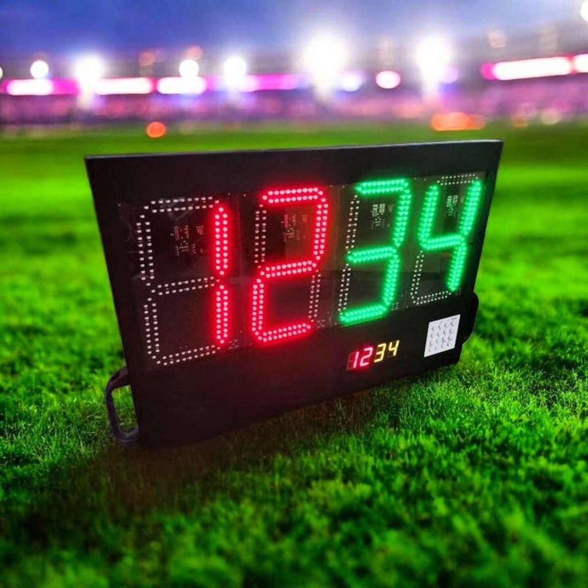 ! ⚽ Представляем профессиональное табло замены игроков от компании «Индустрия Света» — идеальный помощник для судей и организаторов футбольных матчей! 🔥 📊 Модель ТС-250х4e (одностороннее) — это: ✅ Чёткая видимость: яркие зелёные светодиоды высотой 250 мм видны с расстояния до 90 метров — даже на крупных стадионах! ✅ Полная автономность: встроенный аккумулятор обеспечивает до 7 часов непрерывной работы без подзарядки ⚡ ✅ Надёжность в любую погоду: корпус 800×400×60 мм, вес всего 6 кг — легко переносить и устанавливать на любом поле. ✅ Простое управление: интуитивные кнопки на корпусе — никаких сложных настроек, всё под рукой! ✅ Двухцветная индикация: одновременно отображает номера игрока, уходящего с поля, и выходящего на замену 🔄 ✅ Гарантия качества: 1 год официальной гарантии от производителя с 15-летним опытом поставок по России и СНГ 🏆 🎯 Идеально подходит для: • Любительских и профессиональных футбольных лиг • Детско-юношеских спортивных школ • Муниципальных и частных
