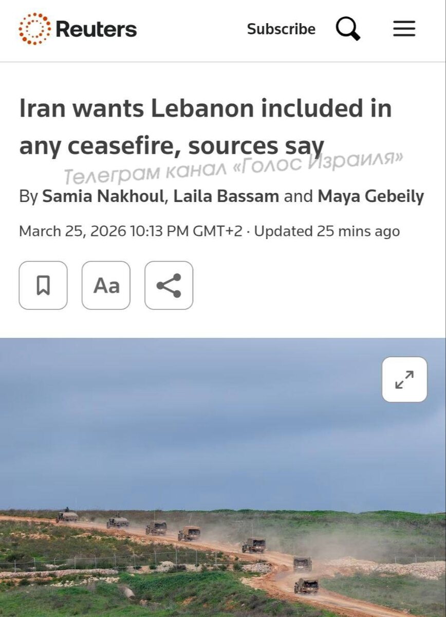 ⚡️Reuters: «Хезболла» получила гарантии от Ирана, что будет включена в любое соглашение о прекращении огня с США.