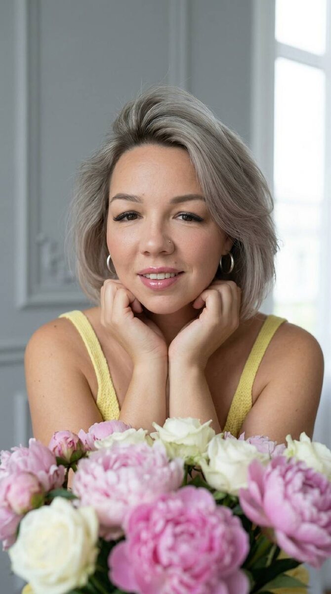 👇🏻 🌟Переходим на удобный сервис для генерации: Ссылка 👉 Syntx Ai Ссылка 👉 Veo3 📌ИНСТРУКЦИЯ ПО ИСПОЛЬЗОВАНИЮ В ЗАКРЕПЛЕННЫХ СООБЩЕНИЯХ 👍👍👍👍👍👍 ⚠️ПОДПИШИСЬ НА РЕЗЕРВНЫЕ КАНАЛЫ 👇 📱 канал в ВК 📱 канал в МАХ ◾️ПРОМПТ : Создай портрет, не меняя черты лица. Крупный план, портрет молодой женщины. Волосы цветом как на фото, короткие, но густые, с объемом у Корней. У неё естественный сияющий макияж и глянцевый блеск на губах. Она изящно опирается подбородком на ладони, позируя за пышным букетом розовых пионов. На ней лимонный трикотажный топ на лямках и серебряные серьги круглой формы. Мягкое естественное освещение, пастельный серый фон с классической настенной лепниной. мягкий фокус на переднем плане (цветы), глубина резкости. Цветовая палитра: приглушенный розовый, белый, и светло-серый. Освещение студийное, имитирующее мягкий дневной свет из окна. Высокая детализация кожи, текстуры волос и лепестков цветов, стиль эстетичной фотосессии, 8k, гиперреализм. Фото 9:16