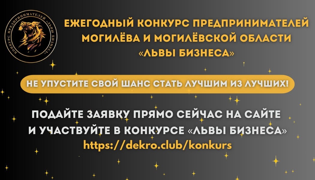 » для предпринимателей Могилевщины ⚡️29-30 мая 2026 года в г. Могилеве пройдет второй бизнес-форум «Львы Бизнеса» с торжественной церемонией награждения финалистов конкурса предпринимателей Могилевской области «Львы Бизнеса». 🔹 К участию приглашаются все предприниматели региона, уверенные в качестве своего продукта или услуги. По результатам предварительного отбора лучшие проекты выйдут в финал, где поборются за главные призы. Прием заявок от конкурсантов до 1 мая 2026 г. 🔹Информацию по участию в Конкурсе можно получить по телефону 📲 +375 44 794-64-26, по организации выставки – по телефону 📲+375 29 231 7840. ❗️Больше информации о мероприятии на➡️ сайте
