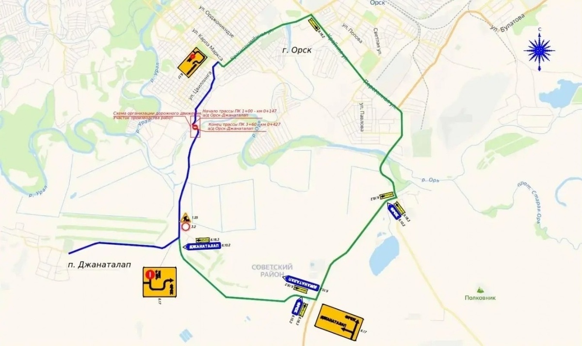 С 16 апреля движение по мосту через реку Орь полностью перекроют - там начинается капитальный ремонт. Ограничения продлятся до 15 ноября 2026 года. На это время проезд будет закрыт для всех видов транспорта. Изменения затронут и общественный транспорт: автобус №28 (пл. Гагарина - Джанаталап) пустят в объезд через Звероферму.