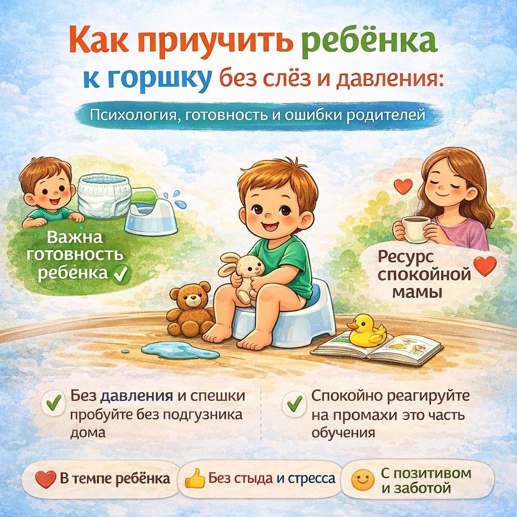 КАК ПРИУЧИТЬ РЕБЁНКА К ГОРШКУ БЕЗ СЛЁЗ И ДАВЛЕНИЯ: психология, готовность и ошибки родителей