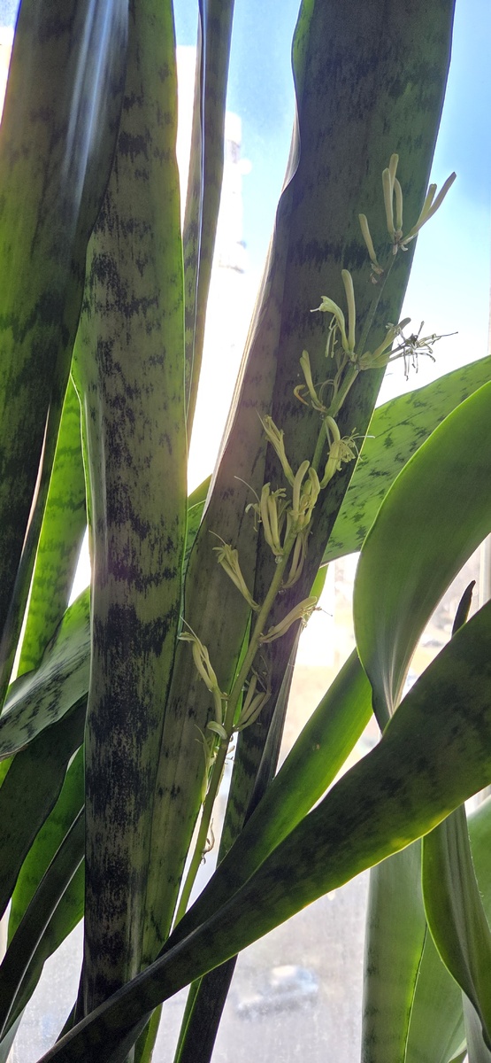 Свершилось чудо - у меня зацвела сансевиерия! Ведь, цветение сансевиерии — это своего рода «сертификат доверия» от растения. Многие годами держат этот цветок на подоконнике и даже не подозревают, что он способен на что-то, кроме своих строгих полосатых листьев. То, что она зацвела, — маленькое комнатное событие для меня. Сансевиерия, которую в народе ласково (или не очень) называют «тёщиным языком», обычно ведет себя как безупречный офисный работник: она всегда в форме, не требует лишнего внимания и стоически терпит любые невзгоды. Но когда на её строгом полосатом фоне появляется длинная, нежная стрела, усыпанная каплями нектара, становится понятно — за фасадом сурового суккулента скрывается тонкая натура. Многие владельцы сансевиерий никогда не видели её цветов. Причина проста: в домашних условиях это растение цветет крайне редко. В природе, в жарких пустынях Африки и Азии, цветение — это способ выжить. В квартире же она решается на этот шаг только в двух случаях: Так что мой цвето