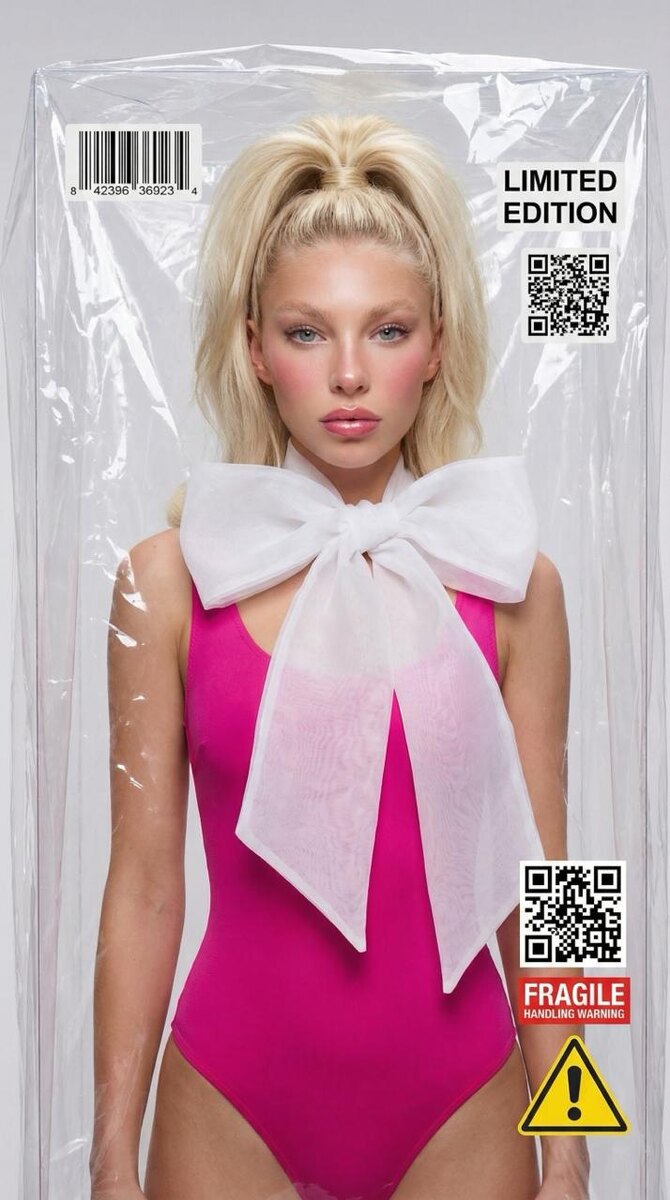 ✨✨✨✨✨✨ ИНСТРУКЦИЯ для генерации такого фото 📸: ✨зайди в бот https://t.me/aibudka_bot ✨ отправь свое фото в бот (лицо чётко видно) ✨ выбери Nano Banana Pro (обязательно ставь ползунок на pro для топ результата 🔛) ✨ параметры: 2K или 4К, 9:16 ✨ скопируй и вставь этот промпт: Сохрани лицо с загруженного фото. Не меняй лицо. Сходство 100%. Сохрани точный цвет глаз и цвет волос модели. Девушка как кукла Барби в заводской упаковке. Голова и тело внутри объёмной прозрачной пластиковой упаковки — плёнка создаёт "коробку" вокруг головы, обрамляет лицо как рамка, с воздухом внутри. Плёнка мятая с заломами и складками. Большой белый бант из органзы на шее. Высокий хвост с объёмом. Розовый боди (hot pink). Наклейки на плёнке: штрих-код, LIMITED EDITION, QR-код, FRAGILE, жёлтый warning sign. Макияж кукольный — розовые губы, румяные щёки. Фон ярко-розовый (hot pink), однотонный. Выражение лица отстранённое, кукольное. Fashion editorial, концептуальная съёмка. #фуксия #иифотограф #иифото