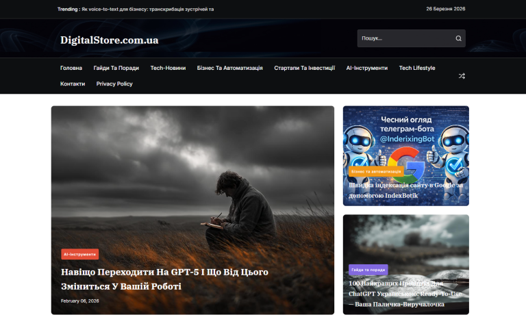 Digital Store UA — это украинское медиа о мире технологий и искусственного интеллекта. Здесь выходят обзоры AI-инструментов, истории украинских tech-стартапов, практические советы по внедрению современных технологий в бизнес-процессы. Сами авторы называют его «магазином актуальных digital-новин» — и это очень точная метафора: контент здесь свежий, прикладной и упакован так, чтобы его можно было сразу применить.