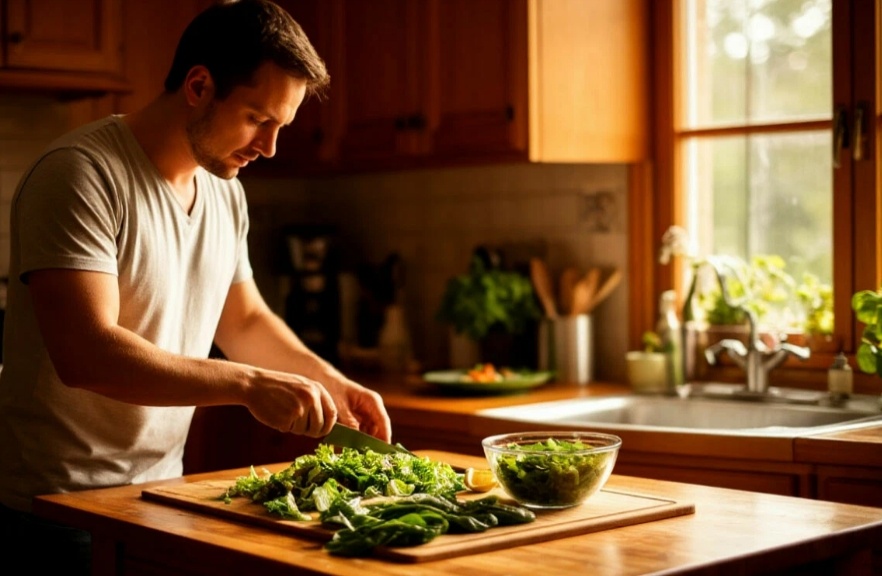 Со стороны — идеальная картинка: муж у разделочной доски, жена у мойки, тёплый свет.