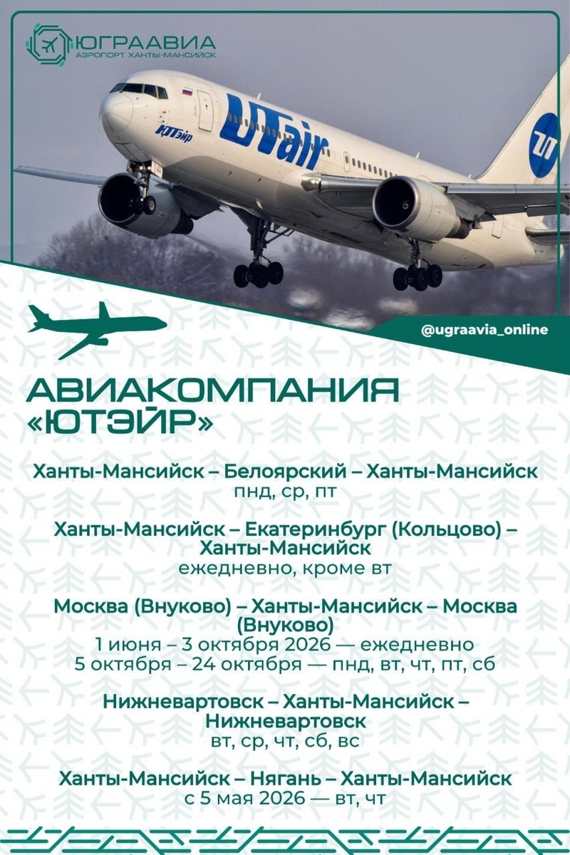 ✈️ С 29 марта 2026 года международный аэропорт столицы Югры начинает работу по новому сезонному расписанию. Появились новые направления, увеличилась частота полётов по популярным маршрутам, изменилось время вылета отдельных рейсов. Коллеги из «Юграавиа» подготовили подробную информацию обо всех изменениях и оформили их в карточках. 🖥️ Проверить актуальное расписание и уточнить детали можно на официальном сайте аэропорта. 🖼 аэропорт Ханты-Мансийска #Транспорт #Авиация #ХантыМансийск #Расписание #СтройкомплексЮгры