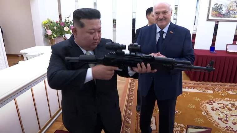 Главы Белоруссии и КНДР Александр Лукашенко и Ким Чен Ын обменялись подарками. Лидеры вручили друг другу оружие, сообщает Telegram-канал "Пул первого". Так, белорусский президент подарил Ким Чен Ыну автомат, произведенный в республике, а сам получил в подарок саблю, золотую монету и вазу со своим изображением. Лукашенко отметил навыки владения оружием северокорейского лидера. На случай, если враги появятся. - сказал Лукашенко при вручении подарка. Ранее президент Белоруссии прибыл в Пхеньян, где провел переговоры с лидером Северной Кореи. Лукашенко отмечал, что отношения Белоруссии и КНДР переходят на принципиально новый этап.