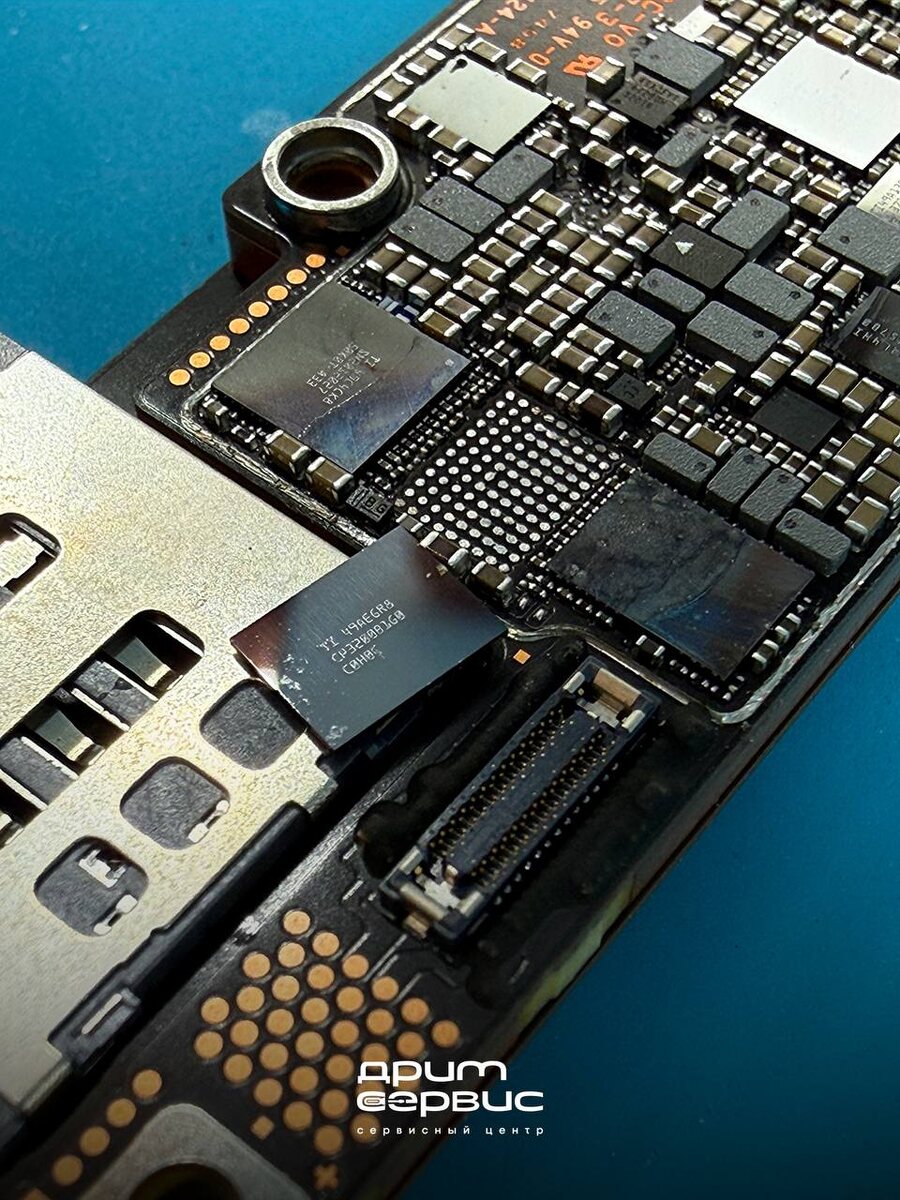 iPhone 16 Pro Max лежал мёртвым. Кнопка включения — тишина. Зарядный кабель — ноль реакции. Хозяин уже смотрел на новый телефон. А причиной оказалась одна микросхема размером с кончик иглы. Устройство попало к нам полностью неработоспособным: не включалось, не реагировало ни на один кабель, принудительный перезапуск — никакой реакции. Стандартная картина при отказе контроллера питания. Диагностика подтвердила: вышла из строя микросхема контроллера заряда на материнской плате. Именно она управляет тем, как устройство получает ток и распределяет его по цепям. Когда она сгорает — телефон перестаёт «понимать», что подключён к зарядке, и не получает команду на включение. Контроллер заряда — специализированная микросхема на плате. Она принимает ток от кабеля или беспроводной зарядки, стабилизирует напряжение и управляет зарядкой батареи. Это не просто «деталь зарядки» — без неё вся система питания телефона слепа. Горит чаще всего по двум причинам: скачок напряжения от некачественного заряд