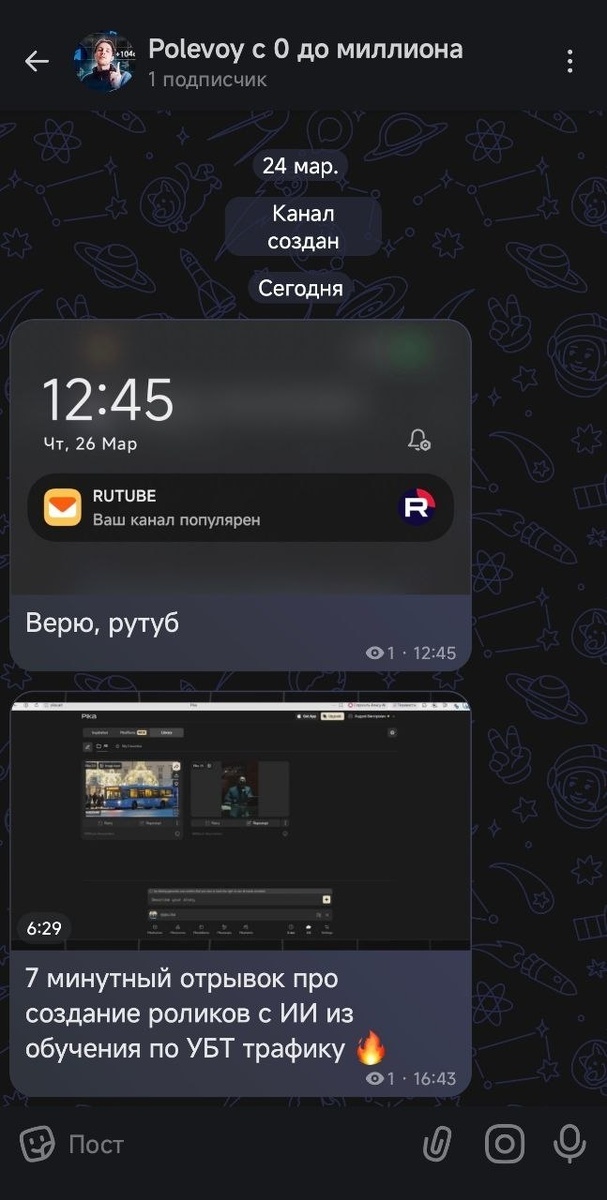💪 Раздел про создание коротких роликов в ИИ. Этим же способом я создавал это видео на 500к просмотров в инсте ⚡️ Фрагмент ПЛАТНОГО обучения можно найти тут бесплатно: https://max.ru/polevoytg У меня в тг два канала с меткой A+ (более 10к подписчиков), поэтому есть возможность создать эти же каналы с публичной ссылкой в максе. ➡️ Там будет другой контент, поэтому подписывайтесь