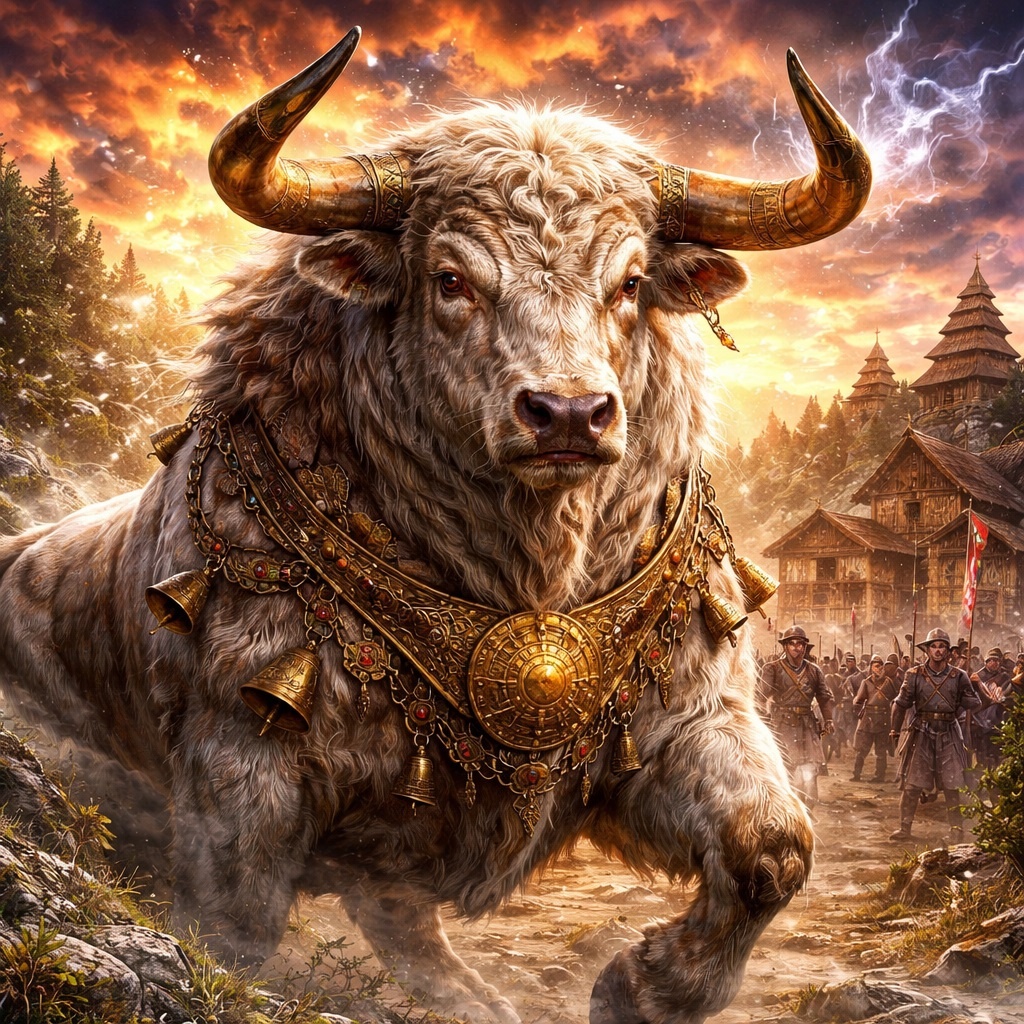 О такой мощи, которая не нуждается в оправданиях. О такой мощи, которая может защищать, а может сметать. О такой мощи, которая требует уважения, потому что не прощает легкомыслия. Человек прошлого это понимал прекрасно. И, возможно, именно поэтому образ быка в традиционной культуре никогда не был “просто сельским”. Он был священным, грозным, связанным с мужским началом, плодородием, воинской яростью, силой земли и мощью жизненного напора.