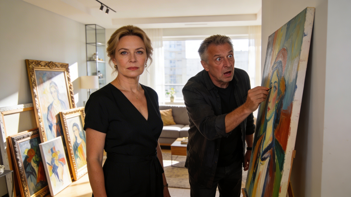 Муж нехотя поднялся, шаркая тапочками, зашел в комнату. Его взгляд остановился на картинах. Секунду он молчал, а затем его лицо начало наливаться тяжелым, пунцовым цветом. Он подошел ближе, но смотрел не на живопись, а на рамы.