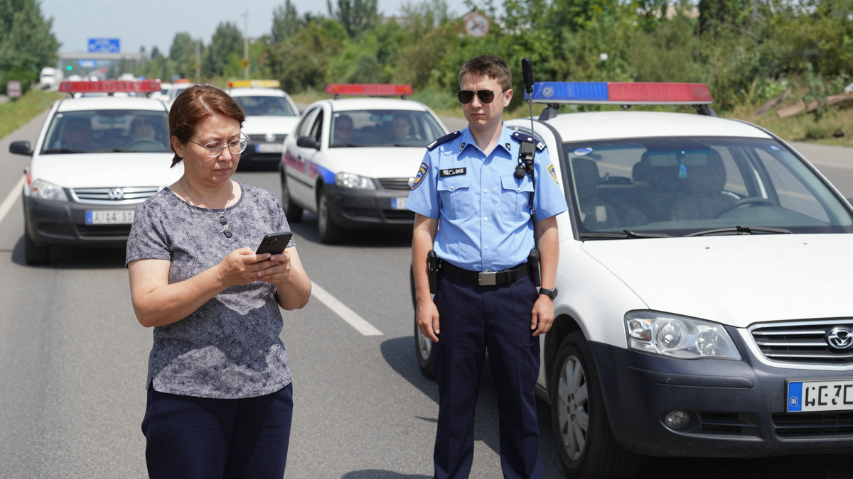 Инспектор подошёл не сразу. Стоял у своей машины — бело-синей, с мигалками, — и разговаривал с напарником. Оба смеялись. Потом один из них — загорелый, с белыми полосками на лице от солнечных очков, которые он сдвинул на лоб, — двинулся ко мне. Покачивался с пятки на носок. Не шёл — фланировал. Хозяин дороги.