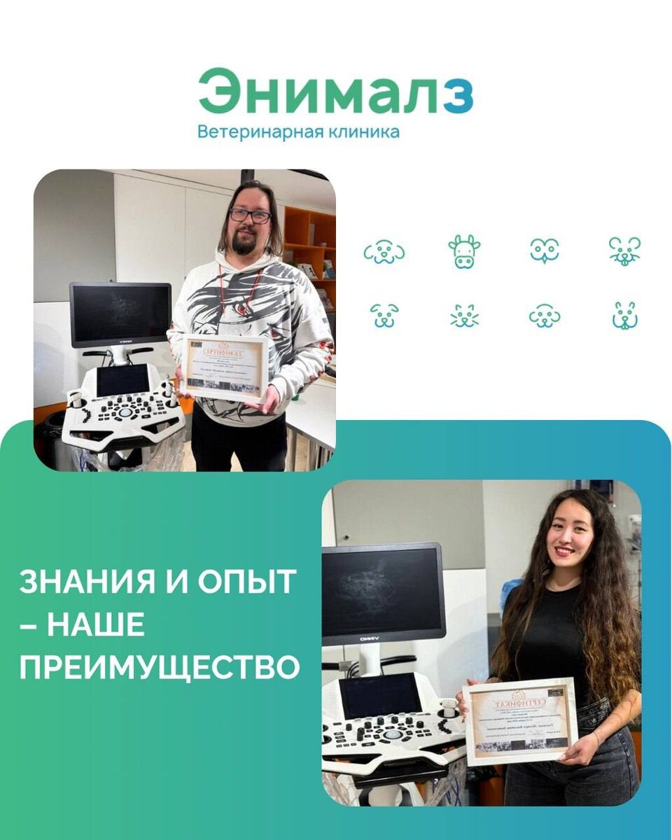 🐾 Полещук Виолетта Анатольевна (ветеринарный врач-терапевт "Энималз" г. Сочи) и Назаренко Артем Евгеньевич (ветеринарный врач-терапевт "Энималз" г. Новосибирск) прошли обучение по ультразвуковой диагностике в Москве. В течение недели были освоены современные методики УЗИ, отработаны практические навыки и пройден обмен опытом с коллегами. Такие поездки помогают нам повышать точность диагностики и оказывать ещё более качественную и своевременную помощь вашим любимцам. Гордимся нашими врачами и их стремлением становиться лучше каждый день🧑🏽⚕️💙 Записаться: 📞209-29-18 (г. Новосибирск) 📞444-40-48 (г. Сочи) 📩Написать сообщение