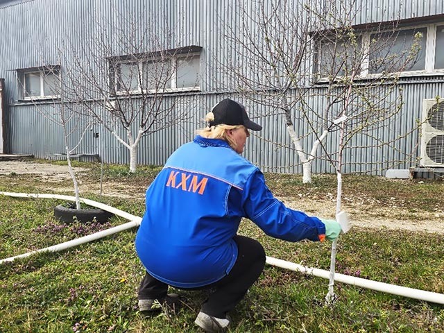 За день убрали накопившийся за зиму мусор и сухую траву, подрезали сухие ветви плодовых деревьев, которые сажали в предыдущие три года, привели в порядок зелёные зоны и высадили новые цветы, побелили бордюр. Территория засияла под весенним солнцем.