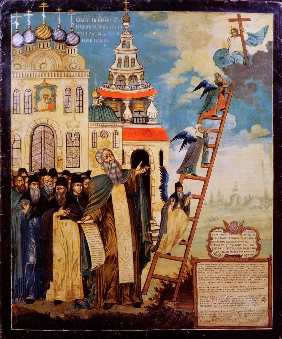 Во имя Отца и Сына и Святаго Духа. На Неделю четвертую Великого поста приходится память преподобного Иоанна Лествичника. Это был монах, который много подвизался и за святую свою жизнь был избран игуменом на Синайской горе. Представляете? Синайская гора, где Моисей во тьме и в громе и в молнии находясь, от Господа Бога слышал дивные обещания и повеления, получил Закон и принёс этот Закон, спустившись вниз с горы к ожидавшему его израильскому народу. Вот на этой самой горе в христианскую эпоху появилась монашеская обитель. И в ней преподобный Иоанн написал свою книгу «Лествица». Эта книга для всех монахов навсегда стала руководством к монашескому деланию, но, однако, не только для монахов. И нам тоже, мирским, совершенно невозбранно её читать, чтобы понять логику духовных трудов, принципы подвижнической жизни, потому что всякий из нас вынужден предпринимать труды аскетические, в деле преодоления греховного помрачения нашей природы.