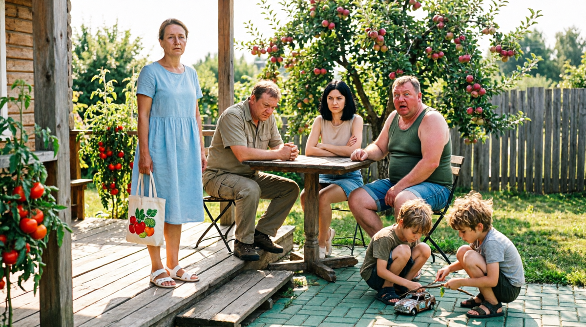 С первого же часа установился чёткий, негласный порядок. Вера — на кухне. Григорий и Олег — отвечают за мангал и напитки. Наталья устроилась в шезлонге с телефоном, изредка покрикивая на детей: «Не лезьте в грядки!», «Не трогайте яблоки, они ещё зелёные!». Дети, разумеется, тут же лезли в грядки и трогали яблоки. Вера делала вид, что не замечает. Она понимала, что если начнёт сейчас устанавливать правила, Григорий скажет: «Ну они же дети, что ты, они не нарочно».
