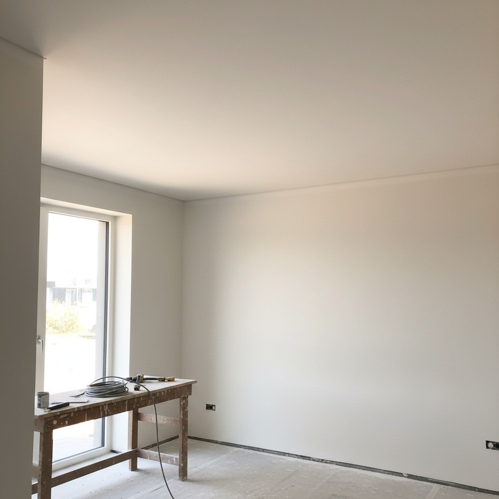 Люди всё чаще просят «живой» потолок под покраску. 🏠 Казалось бы, натяжной — это быстро, чисто и дешево. Но у наших клиентов другие аргументы, и я с ними полностью согласен. Главное — это визуальная чистота. Натяжной потолок, какой бы он ни был крутой, часто дает этот специфический отблеск или едва заметную вибрацию от сквозняков. В современной отделке сейчас в тренде матовые, глухие поверхности, которые выглядят как часть капитальной стены. Это создает ощущение надежности и монолитности. Второй момент — высота. В современных ЖК каждый сантиметр на счету. Натяжной съедает минимум 5-7 сантиметров, а если освещение сложное, то и все 10. Потолок под покраску сохраняет объем и воздух в квартире. 🎨 Ну и эстетика стыков. Сделать идеальное примыкание натяжного полотна к стене без пластикового канта — та еще задачка, требующая дорогого теневого профиля.