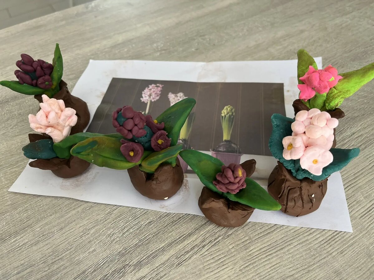 Сегодня на глине у нас творилась настоящая весенняя история! Ребята лепили гиацинты. Но, как и в любом важном деле, здесь была своя последовательность. Сначала в руках появилась плотная луковичка — основа основ. Потом из глины «выросли» длинные, сочные листочки. Следующим шагом стал тонкий стебелек и на него мы нанизали бутоны-бусинки. И только когда база была готова, на стебле распустились самые нежные раскрытые цветочки. Шаг за шагом, мягкие детали соединялись в единый хрупкий цветок. И знаете, они получились как живые! А после того, как глина высохла, мы взяли кисти и оживили их красками. Посмотрите, как мило вышло! Но, если честно, красота цветов — это лишь вершина айсберга. «Глина для наших особых ребят — это настоящая волшебная терапия. Когда ребенок погружает руки в эту удивительную, прохладную, скользкую, а потом податливую консистенцию, в мозг поступает мощнейший поток сенсорных сигналов,- делится Юлия Савенкова, психолог особого семейного центра «Семь-Я», - Глинотерапия мягко