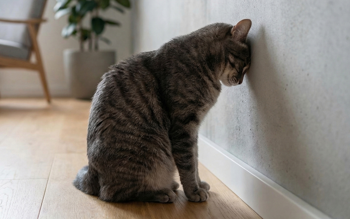 Странное поведение, не так ли? Кошка подходит к стене, шкафу или другому предмету и буквально упирается в него головой. На первый взгляд это может показаться забавной привычкой или случайностью. Но одно дело, когда кошка слегка трётся головой о человека или мебель, и совсем другое — когда она именно упирается лбом в поверхность и… замирает.