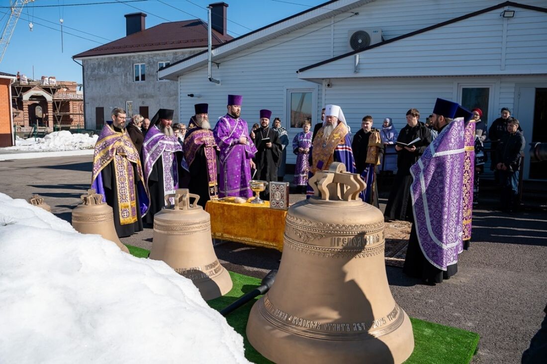 Митрополит Пензенский и Нижнеломовский Серафим 24 марта совершил чин освящения четырех колоколов для колокольни строящегося храма в честь преподобной Евфросинии Московской в Спутнике. После окончания чина освящения Высокопреосвященный владыка Серафим обратился к собравшимся. «Колокола — это голос церкви, который призывает на молитву и возвещает о важных событиях церковной и государственной жизни. И, прежде всего, это показатель того, что храм живет», — сказал он. Закладка храма во имя преподобной Евфросинии Московской состоялась 19 февраля 2022 года. Проект нового храма включает строительство комплекса площадью около 3 тысяч квадратных метров. В него войдут одноэтажный храм с подвалом, колокольня-звонница и трехэтажный приходской дом. В здании разместятся Духовно-просветительский центр, воскресная и хоровая школы для детей и взрослых, школа раннего развития, а также кружки и студии разных направлений. «На участке, где возводится храмовый комплекс, был установлен временный храм в честь