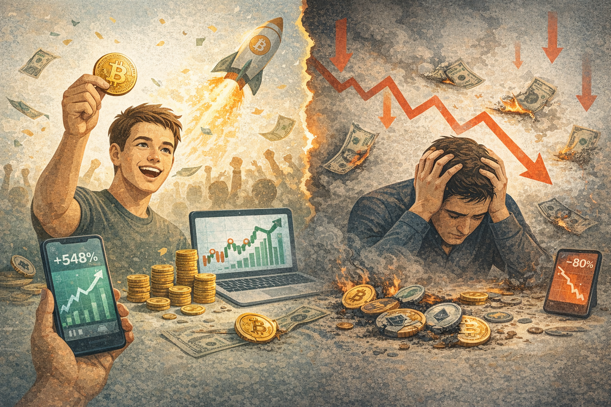 Каждый бычий рынок производит одно и то же: десятки историй про «вошёл на тысячу — вышел миллионером». Эти истории разлетаются быстро, потому что они будят что-то глубокое — желание, что так может быть и у тебя. Только вот за каждой такой историей стоит тысяча человек, которые потеряли деньги и промолчали. Меня зовут Евгений Михеев. 14 лет в инвестициях, последние годы - глубоко в крипте. Я видел много циклов роста и столько же обвалов. Чем горячее рынок, тем громче истории про лёгкие деньги. И тем важнее понимать, как они устроены. Само ожидание прибыли повышает уровень дофамина — ещё до того, как вы что-то купили. Мозг начинает активно искать подтверждения: кликает на заголовки «следующий X100», замечает чужие успехи и фильтрует чужие убытки. Это не слабость характера — это нормальная работа нейронных механизмов, которые эволюционно заточены на поиск возможностей. Крипта для этого — идеальная среда. Высокая волатильность, круглосуточный рынок, бесконечный поток контента в соцсетях.