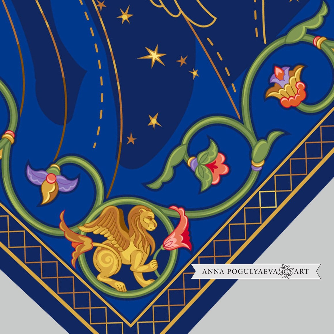 Векторный принт для шелкового платка с идеей и эскизами заказчика. Рисую бордюрчики, компоную и привожу в гармоничный вид.