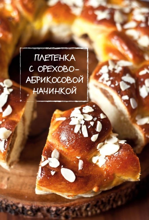 6. Готовую плетенку вынуть, смазать разогретым абрикосовым вареньем и посыпать миндальными лепестками.