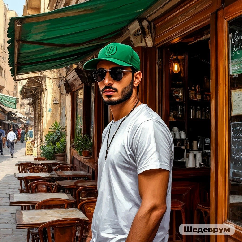 "Стою возле кофейни "Habibi Coffee" в зелёной бейсболке".
