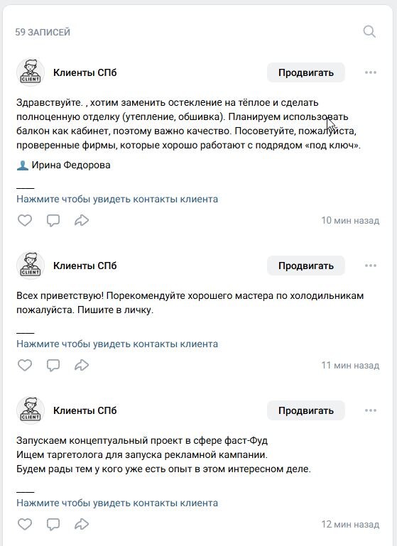 ! 🌟 Мы создали группу для предпринимателей — здесь собраны объявления со всего Санкт-Петербурга из ВК и ТГ от людей, которые ищут специалистов! Больше не нужно искать клиентов — они найдут вас сами! Экономьте время, получайте свежие заявки и развивайте бизнес с удовольствием. Присоединяйтесь — покоряем вершины вместе! 🚀 ~~ Ссылка на группу: https://vk.com/klientyspb
