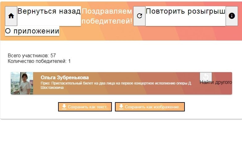 ! Волнующий момент настал! Розыгрыш билетов на концертное исполнение оперы Д. Шостаковича «Нос», которое впервые состоится на нашей сцене, завершён. Заветный пригласительный билет на два лица получает Ольга Зубренькова! Поздравляем Вас, напишите нам в личные сообщения сообщества, чтобы получить свой приз. Победитель выбран случайным образом с помощью приложения Рандомайзер. Билеты онлайн по ссылке. 12+ 💬МАХ 💙ВКонтакте 💬Одноклассники #ВремяДляТеатра