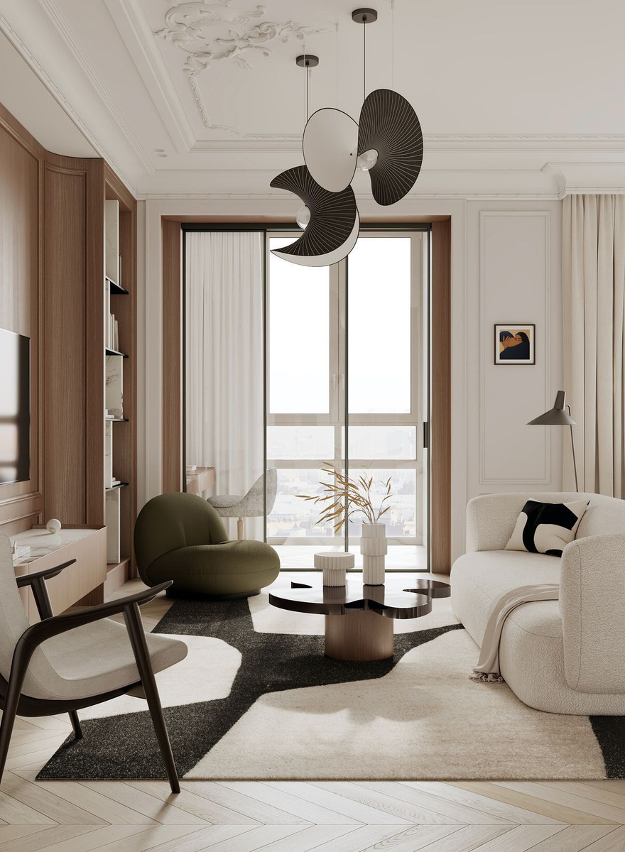 Это не музейная классика и не деревенская романтика. Это элегантность без пафоса, историчность без тяжести, роскошь без крика. Это когда квартира выглядит так, будто в ней живут три поколения семьи, каждое добавило что-то своё — и всё это сложилось в гармоничную, обжитую, но при этом изысканную картинку.