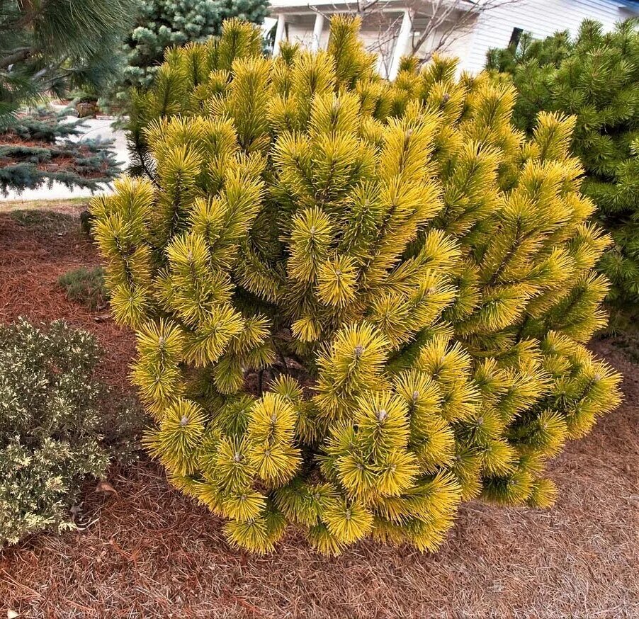 Карстенс Винтер Голд (Carstens Wintergold) — это декоративный сорт горной сосны, выведенный в Германии в 1969 году. Отличается компактной шаровидной кроной и жёсткой блестящей хвоей, которая к осени приобретает насыщенный золотистый оттенок, что делает растение особенно привлекательным в зимний период. Высота взрослого кустарника обычно не превышает 0,7 м, а диаметр может достигать 1,2 м. Годовой прирост составляет всего 5–7 см, что подчёркивает его медленный рост. Применение и уход Сорт широко используется в ландшафтном дизайне: его высаживают как в одиночных, так и в групповых композициях, сочетая с многолетниками, а также в японских садах, рокариях и на альпийских горках. Растение неприхотливо, требует минимального ухода. Оптимальное время для посадки — апрель или начало осени. Лучше всего развивается на солнечных участках с лёгкой, хорошо дренированной почвой, кислотность которой может варьироваться от слабокислой до щелочной. При посадке важно оставлять достаточно места для раз